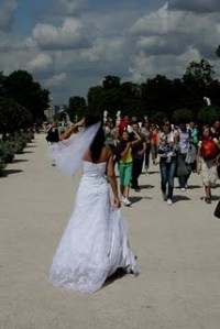 imi place sa colectionezi povesti interesante. sa le ascult, sa aflu detalii, sa inteleg. chiar acum, la inceput de an, am aflat modul in care o amica si-a cunoscut sotul. veti zice ca este o chestiune de destin, chiar daca nu credeti in asta. pe Ioana o cunosc de cativa ani, pe vremea cand lucra la o firma de PR. am remarcat de la inceput silueta ei zvelta si atitudinea sincera. un timp n-am mai stiut nimic e ea. am regasit-o, cum altfel, in oceanul de contacte de pe FB. i-am citit din intamplare „blogul de printesa”. si scrie al naibii de bine. asa am aflat povestea incredibila a intalnirii dintre ea si cel care avea sa-i devina sot. in urma cu 2 si ceva ani, Ioana tocmai traversase o perioada grea si regasise linistea singuratatii. blogul devenise o fereastra catre lume, in care isi exprima dorintele si visele. printre multii comentatori ai post-urilor (credeti-ma ca are, pt ca aveti ce citi pe blogul ei !), era si un tip care intervenea periodic. intr-o seara, dupa vizionarea unei reclame tv si sub umbra unei tristeti nestiute, Ioana a lansat in neant o intrebare:” de ce nu mi se intampla si mie sa gasesc la usa o cutie de bomboane ?„. soneria a sunat in noapte. la usa, o cutie cu bomboane frumos ambalata. dialogul virtual cu autorul suprizei, de fapt chiar tipul care comenta periodic pe blog, a continuat cateva saptamani. au hotarat ca venise timpul sa se vada. intr-o zi, la libraria Diverta. Ioana se prefacea preocupata de o carte, dar mainile ii tremurau de emotie. cineva a trecut pe langa ea si i-a inchis cartea ca o gluma. Ioanei i-a fost teama sa ridice privirea.”daca nu-mi va placea cum arata ?” s-a gandit infiorata. in fata ei, un barbat de aceeasi varsta cu ea, emotionat si zambind larg. atunci Ioana a stiut. „intelegi ca nu stiam nimic despre el? nici cum arata, nici cati ani are, nimic, nimic, decat ca e IT-ist la o banca. dar felul in care imi scria si modul in care comunicam a creat ceva fantastic. incat nici nu mai contau toate astea !„. avea sa-mi povesteasca Ioana zilele acestea la o cafea. dupa mai bine de o luna, au fixat data nuntii si au facut pregatirile. familia si prietenii erau mirati pt ca habar nu aveau ca Ioana ar iesi cu cineva ! in vara aceasta se implinesc 2 ani de cand s-au luat si ” este mai bine decat mi-as fi imaginat!„, marturiseste Ioana. „de fapt, el m-a gasit pe mine, cand am fost pregatita. a venit pur si simplu spre mine „. partea cea mai interesanta s-a petrecut in luna lor de miere la Paris, un vis de-al Ioanei. au fost niste miri non- conformisti, care au facut deliciul presei franceze: stil underground. s-au plimbat imbracati in mire si mireasa cu metroul prin Paris. iata cateva imagini :