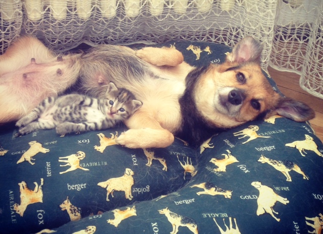 Povestea căţeluşei Lola care a alăptat pui de pisică