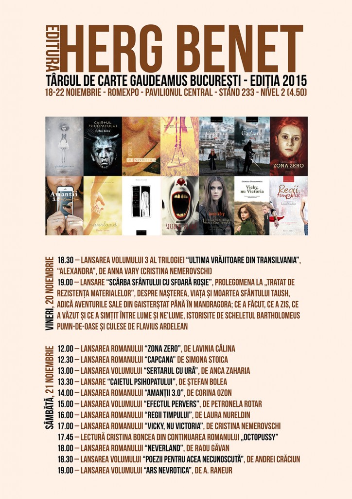 Tot în această toamnă, am onorat invitația lui Victor Kapra de a vorbi din nou la cursurile Naked PR despre cum am construit promovarea cărților mele pe rețelele de socializare, singură-singurică. Și tot legat de acest lucru, am mai primit o veste bună: am fost nominalizată la Romanian PR Award 2015, la categoria Social Media, unde am aplicat cu campania de promovare a Zilelor și Nopților amanților. Pe 26 noiembrie voi fi prezentă la Gală, printre mari agenții de publicitate. O recunoaștere a faptului că toată munca mea legată de „cel de-al doilea job”, cum spun eu despre ceea ce fac legat de scris, nu a fost întâmplătoare și în zadar. Și că succesul ți-l poți construi prin răbdare, disciplină și pasiune. Tot din luna noiembrie, am acceptat propunerea venită din partea platformei Chic-Elite.ro de a fi mentor pe relații interpersonale. Deja am avut o ședință de mentorat foarte interesantă despre singurătate și rutina în cupluri.